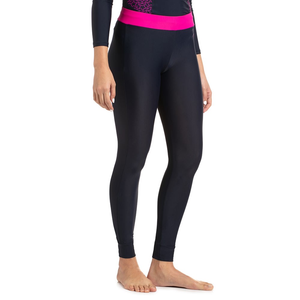 Active Contrast Legging This active Legging from our women's Swim Active collection works hard to protect you from the sun’s harmful rays. It features a secure and comfortable wider waistband and offers the perfect technology for a hot day t the beach or pool. Features • Drawstring around waist for enhanced fit and security • All purpose wear - for swim, gym or leisure • Higher chlorine resistance than standard swimwear fabrics - fits like new for longer with CREORA® HighClo™ • Shape retention fabric • Sun Protection - UPF 40+ Fabric Description: Endurance®10 Fabric Composition: 80% Nylon, 20% Elastane(Creora® HighClo™)